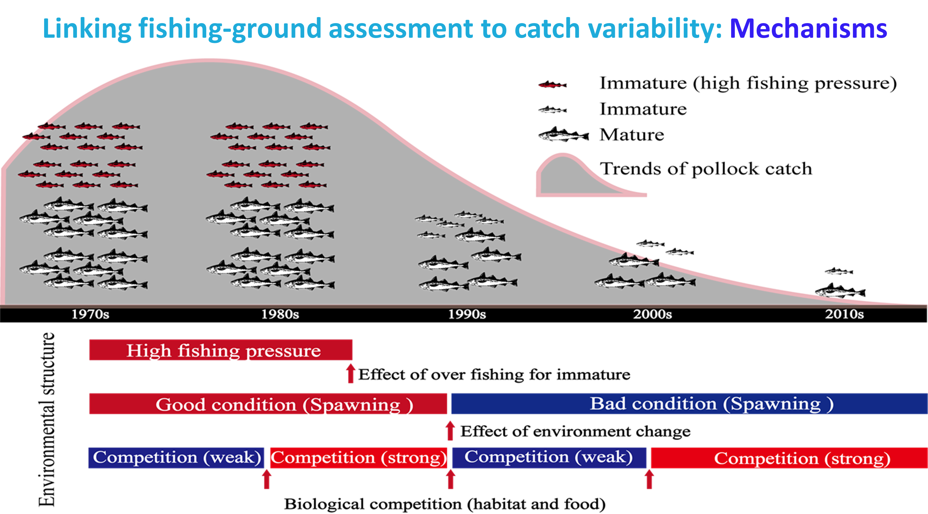실험실 소개 생명과학2호관 219호 현장관측 자료를 기반으로 동해 해양환경 변화와 수산자원 생태 변동을 정량 분석하고, 어장 생산성 평가와 자원관리 예측모형을 개발하는 연구실입니다. 연구분야 수산자원생물 어장의 공간적 위치 변화 및 자원량 변동 원인 구명